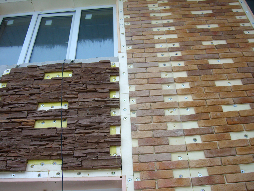 Для крепления панелей к несущей стене использовать саморезы соответствующей длины таким образом, чтобы в стену вкручивалось не менее одной трети(1/3) общей длины самореза. Для монтажа в кирпич или бетон используйте дюбель-гвозди, в пеноблоки специальные дюбели для пеноблоков, обязательно используйте широкие шайбы.