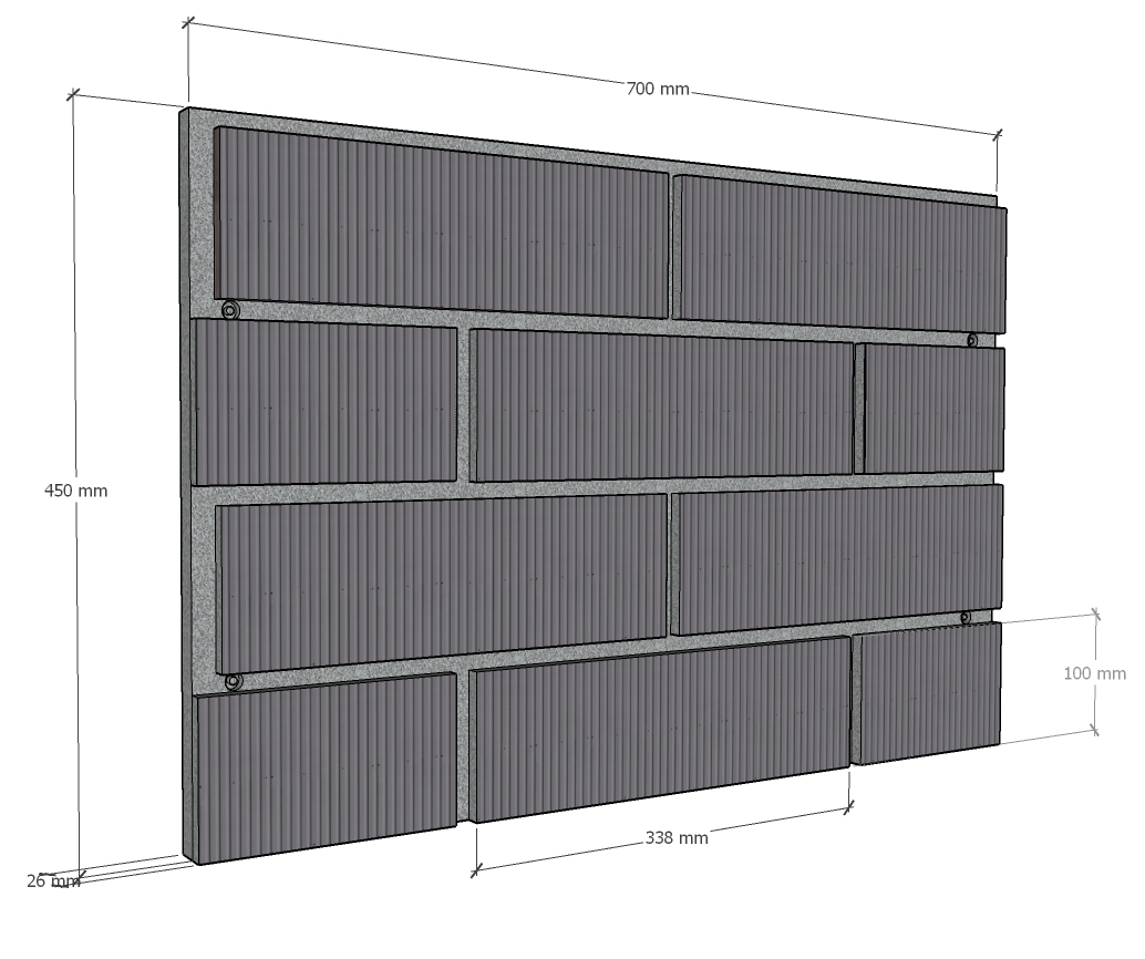 Размер 700х450х26 мм, вес ~15 кг/шт.
